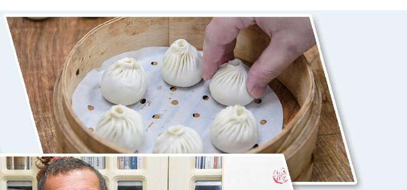 绿波廊副总经理王时佳正在检查徒弟们制作的小笼包。