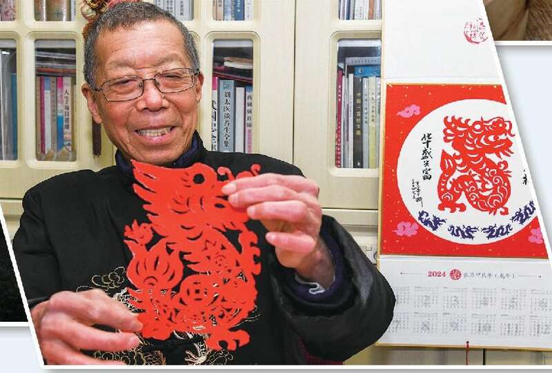 非遗代表性传承人华兴富展示海派撕纸作品。均本报记者邢千里摄制图:李洁