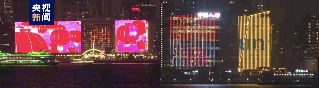 △维多利亚港两岸大屏幕循环播放总台春晚宣传片