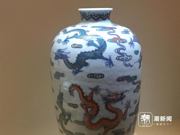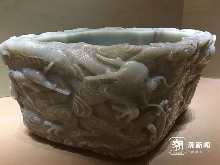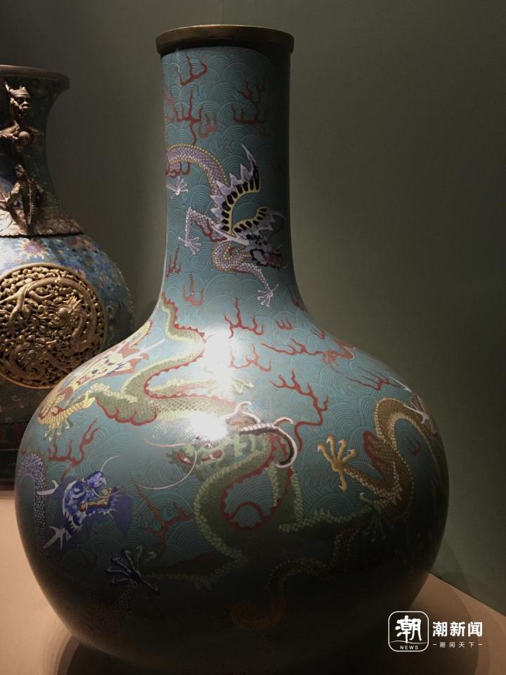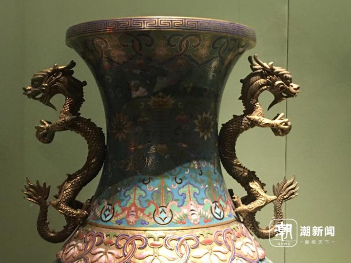 潮新闻记者2月16日在颐和园德和园看到,展出的66件/套文物包含玉器、瓷器、书画、珐琅、家具等品类,含有云龙、团龙、蟠龙、穿花龙、海水龙、九龙等多种龙纹图案。