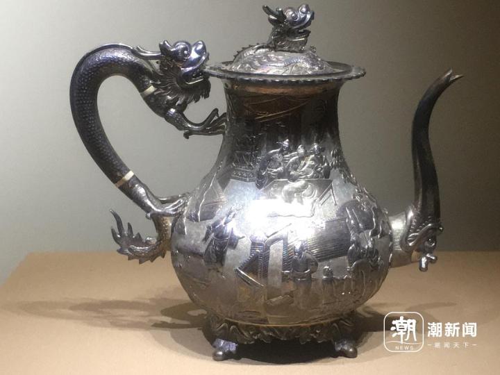 银镀金人物故事龙柄长流银壶(19世纪末至20世纪初)