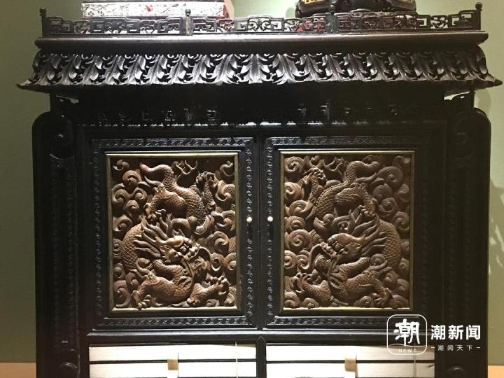 展览还展出了银镀金花卉龙纹碗、朱漆雕双龙捧寿方盒、紫檀䕫龙纹包铜角有束腰炕几和沉香木雕盘龙杖等极富生活气息的用品,全面展示出龙纹在清宫生活中的应用。