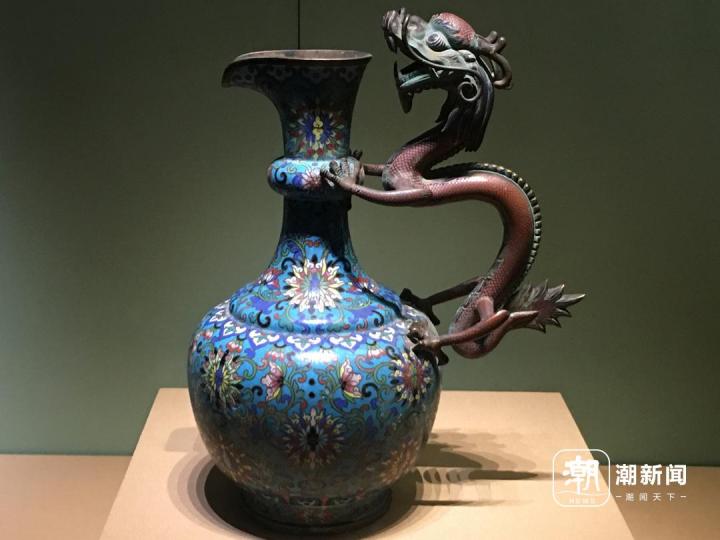铜胎掐丝珐琅缠枝莲纹龙耳浇壶(清)