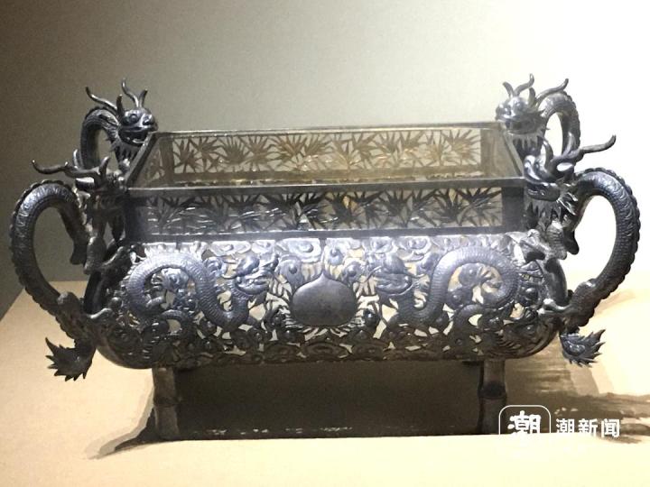 银镀金镂空龙纹玻璃胆水仙花池(19世纪末至20世纪初)