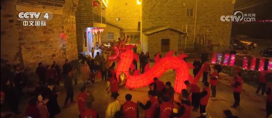 在湖北咸宁通山县江源村,一条由175节板凳组成,长达369米“火龙”在村中”巡游“,龙年喜庆的氛围拉满。