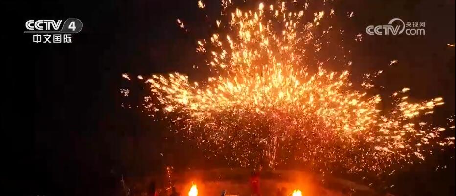 看烟火、赏花灯,在江苏泰州市姜堰区的新春灯会上还能看到“打铁花”表演。表演者将铁汁高高抛起,再用木板奋力向空中打散,霎时间片片“花海”绽放,好像无数只萤火虫在欢快飞舞,又仿佛满天流星划过夜空。