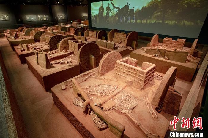 殷墟博物馆新馆内的殷墟车马遗迹展厅现场。 (中国国家文物局供图)