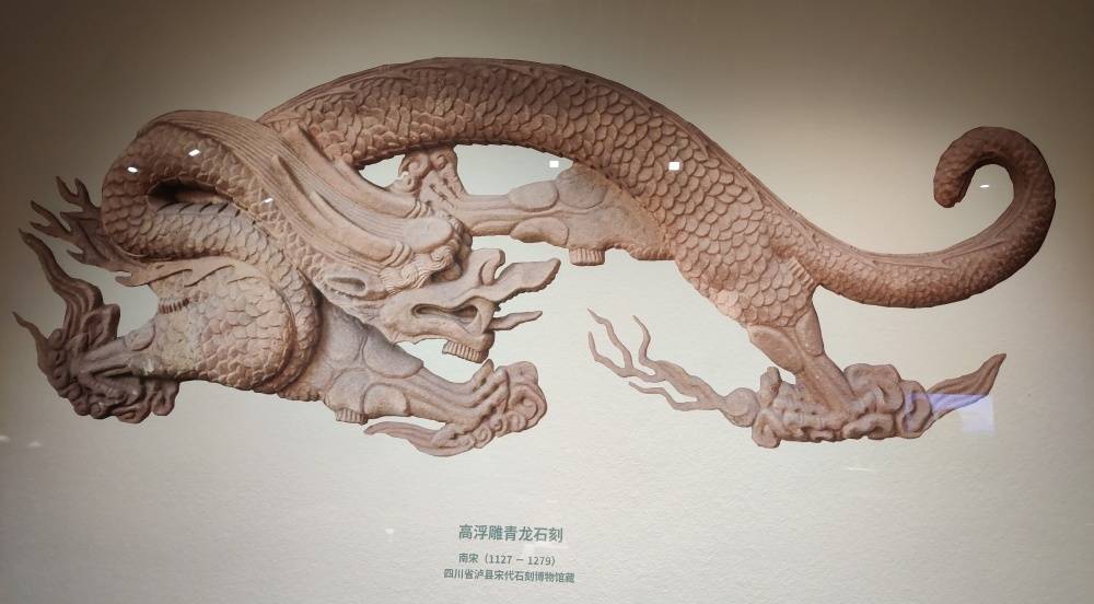 高浮雕青龙石刻。四川泸县宋代石刻博物馆藏。图片拍摄自四川博物院“龙行中华”贺岁特展
