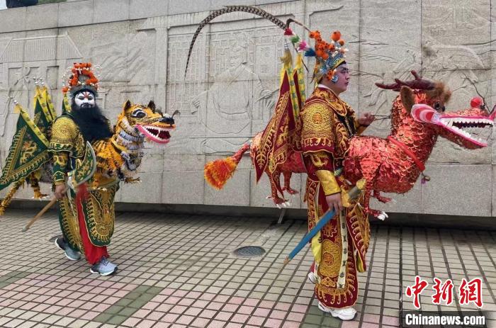 8岁的戴登哲是官洲村龙灯的一名“玩”小龙的演员。尽管演出时早出晚归,最多时日行四万步有余,但他说:“我是特别想‘玩’龙灯,自己要求参加的。”“因为喜欢,所以不累。”