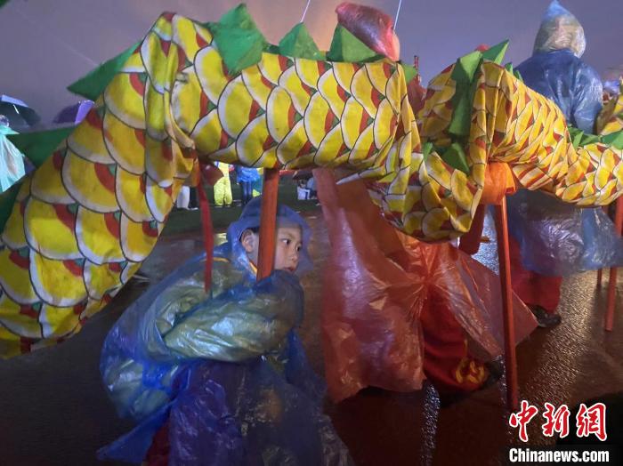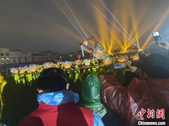 当晚,夜幕降临时,飘落的细雨,抵挡不住看灯、舞灯人的热情。在南陵县体育场,数千群众观看12支灯队的民俗集中展演。(完)