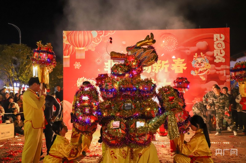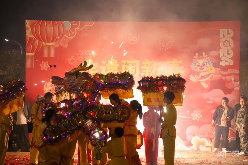 央广网吉安2月21日消息(记者刘培俊)2月18日,在江西省吉安市万安县夏造镇,“非遗闹新春欢喜过大年”非遗烟火晚会精彩上演,现场锣鼓喧天、人头攒动。