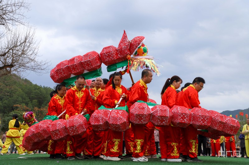 非遗股子灯、舞龙灯、广场舞等表演轮番登场,多节股子灯彩在表演艺人的舞动下,好似一条巨龙上下翻飞、盘旋缠绕、气势磅礴、绚丽多姿,场面欢快喜庆,一展人们欢度新春、欢庆丰收的喜悦心情。
