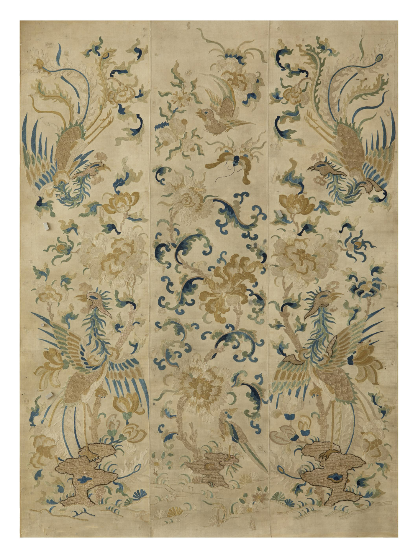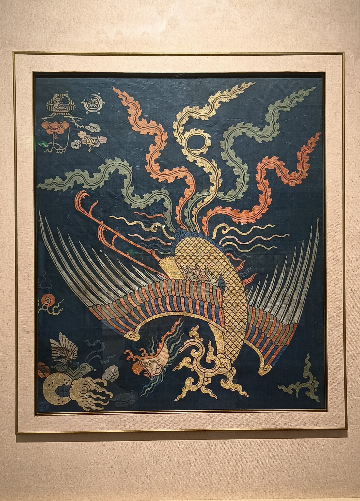 绣品、织物文化和技艺是非遗传承的重要内容,“龙凤”是中国传统文化中重要的图腾符号。龙是皇权和力量的象征,神龙保佑,则风调雨顺、五谷丰登;而凤是和美与和谐的象征,有凤来仪,则国家太平、万民安康,故龙凤图案之绣品、织品为历代宫廷帝王所专享。