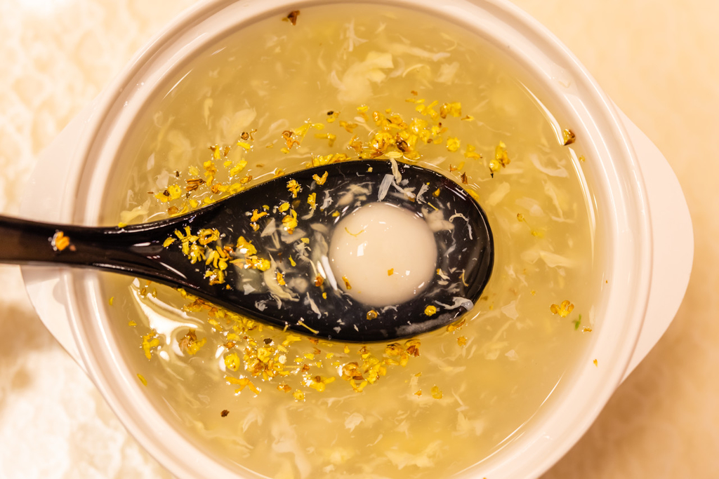 文人的笔下食材铺陈如一场魔法秀:粉屑被比喻成净雪,轻盈如鲛人织就的绡,如烟如雾。女子指尖造化出颗颗饱满的珍珠,细碎小巧,需花功夫。待热汤初滚,洁白的圆子尽数浮于锅面。这便是“浮圆子”名称的由来。宋·赵师侠《南乡子尹先之索净圆子词》咏道: