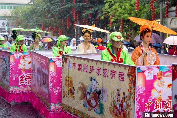 此外,精彩的活动在古城持续进行:换花舞浪漫上演,以花为媒,互传心意;琼剧声声缭绕,更添古风古韵;“十三花神”跟随百米灯光长龙一同巡游……广西游客陈冬青称“像看了一场‘穿越’的民俗大戏”。