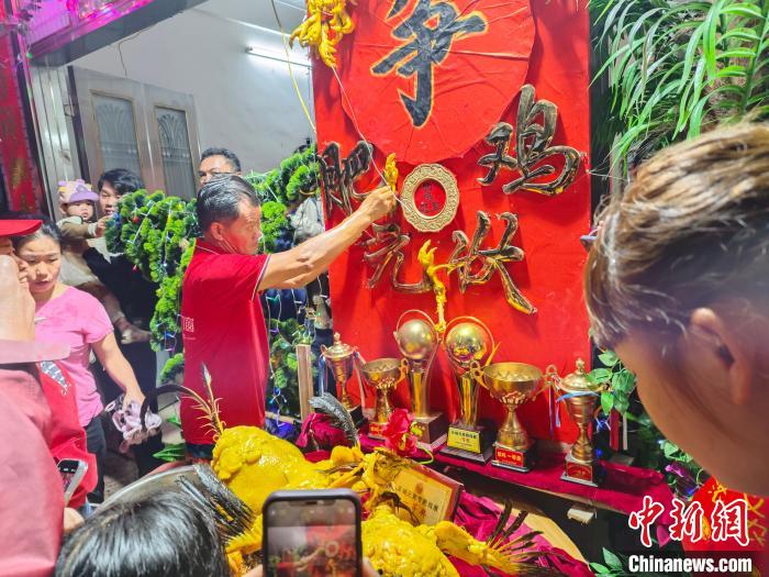 琼海市博鳌镇乐城村有举办“赛肥鸡”的独特民俗。参加“打擂台”的肥鸡被装饰得光鲜亮丽,或嘴里叼着鲜花,或脖子挂着项链,或装饰金色彩带,肥美出众的鸡说明农户养鸡本领高,也是最勤劳的象征。