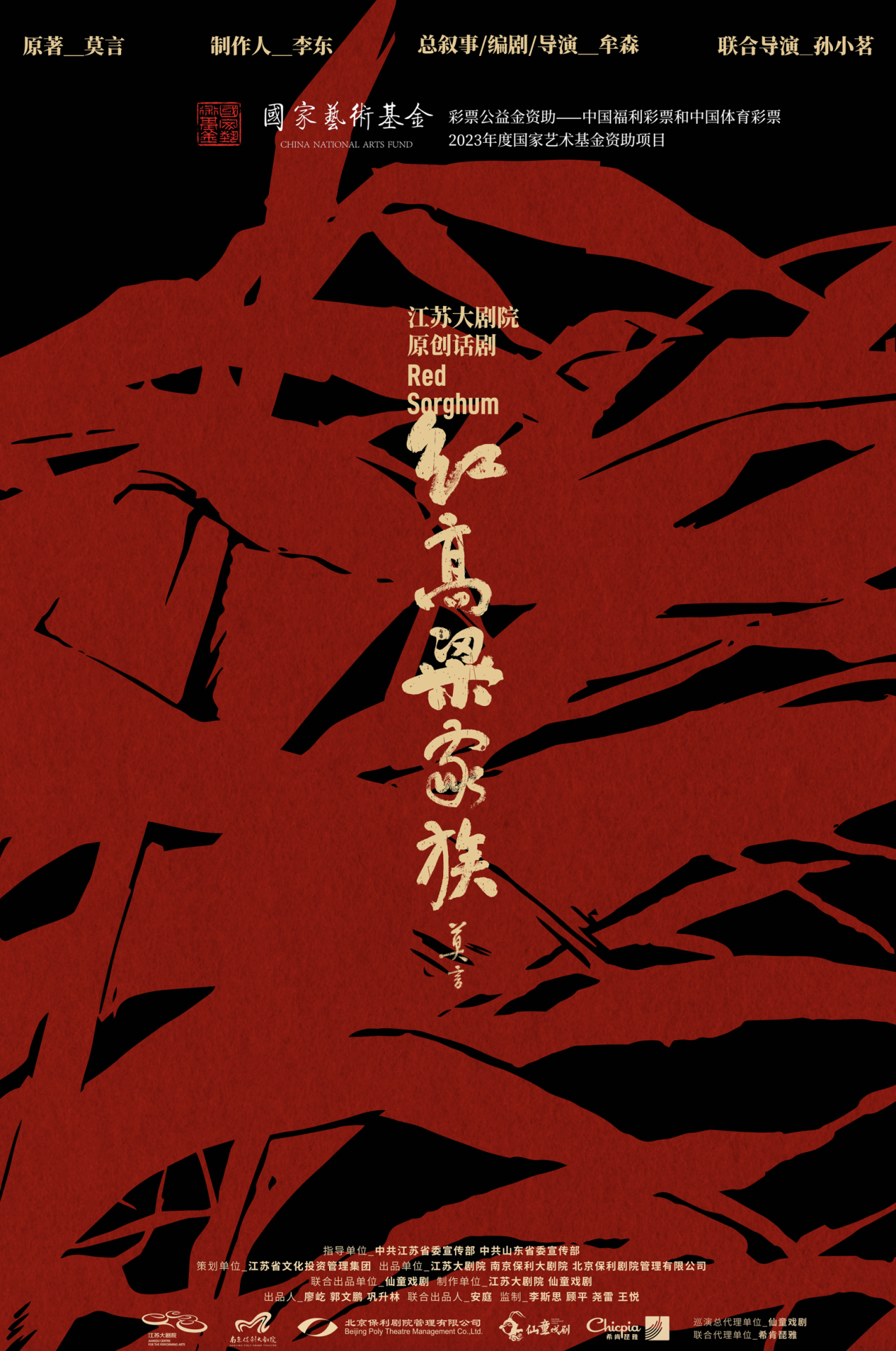 该话剧根据莫言的同名长篇小说改编,以小说中绿林响马的高密东北乡为叙事空间,塑造了以“我爷爷”和“我奶奶”为代表的先辈们,在“无边无际的高粱地”里自由驰骋,以一身的豪气演绎着高密东北乡的民间传奇。