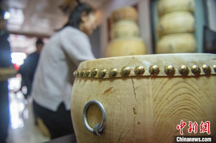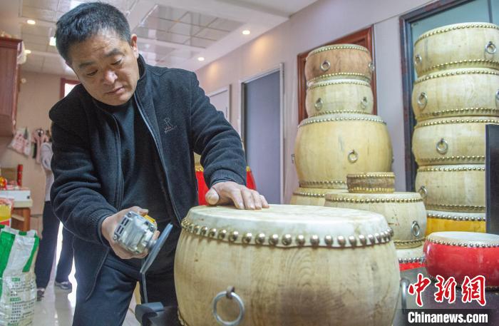 2月27日,走进河北省衡水市枣强县手工制鼓艺人付俊魁的工作室,他正在全神贯注地制作牛皮鼓。
