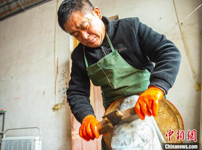 2月27日,付俊魁正在进行刨皮工序。李金刚摄