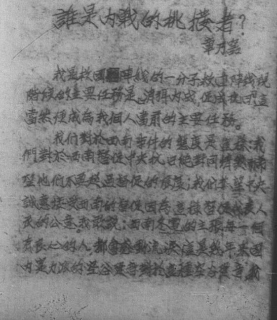 我们可以推测,第一期《时论》是由李柱南从电讯译出《西南当局两个通电》,其他文章是向仲华从外电、报刊上选辑的。