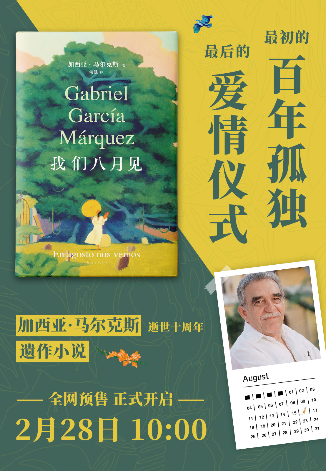 2024年也是马尔克斯去世十周年。2月28日,澎湃新闻记者从新经典获悉,马尔克斯遗作《我们八月见》简体中文版将于今年3月全球同步首发。