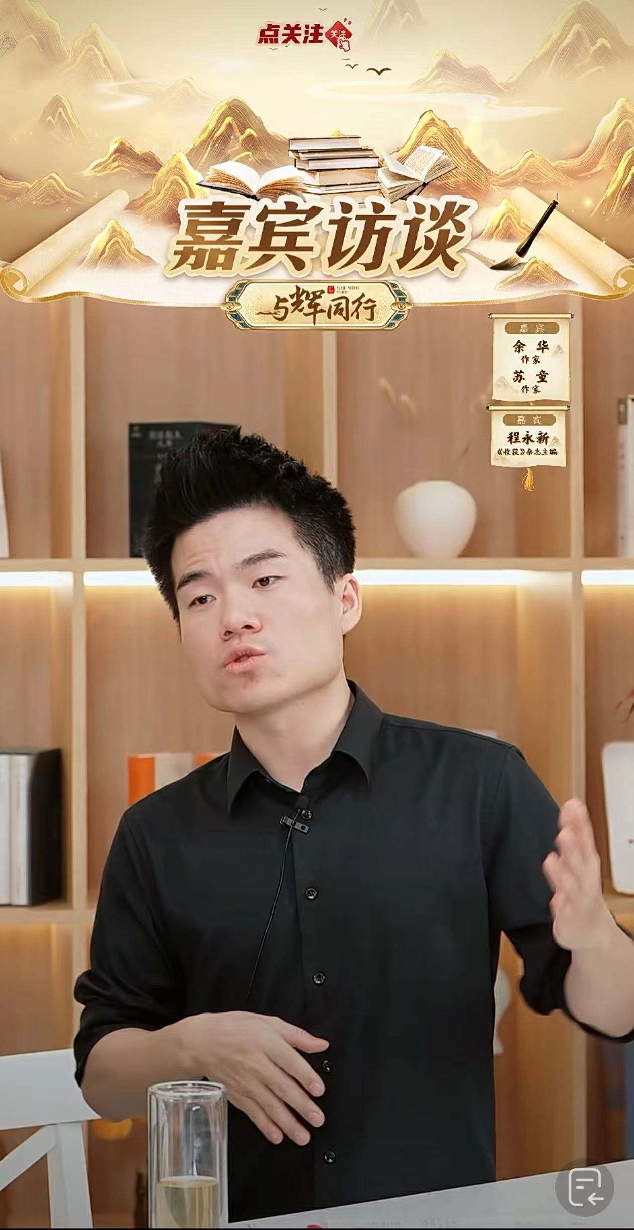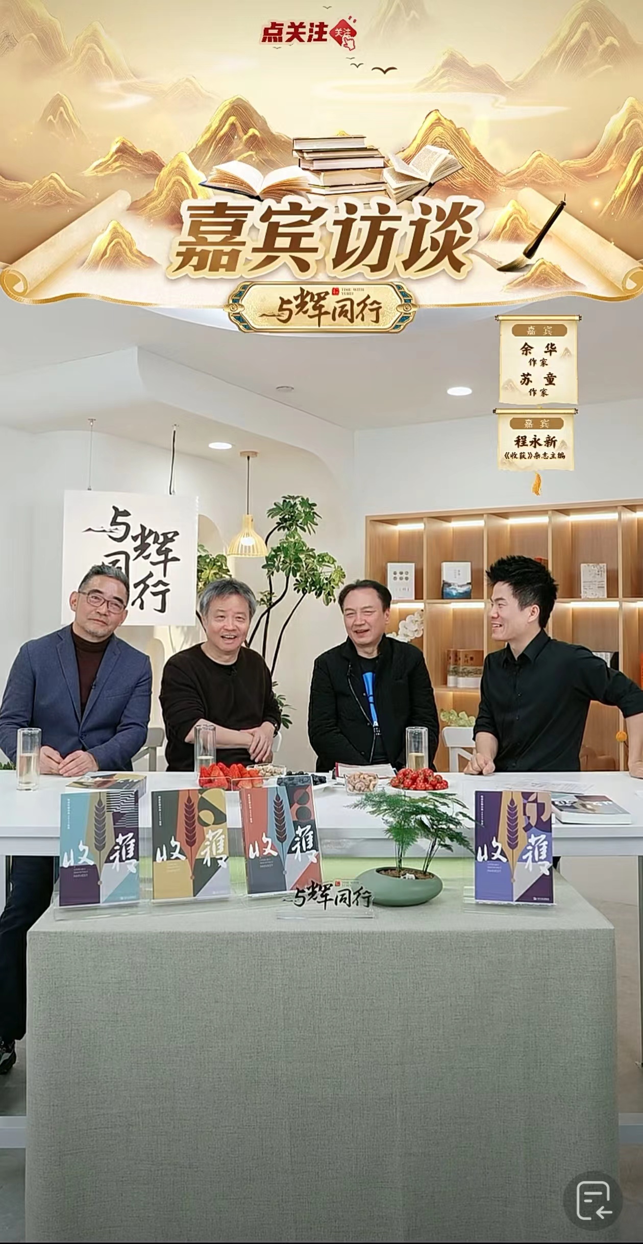 余华、苏童、程永新在“与辉同行”直播间