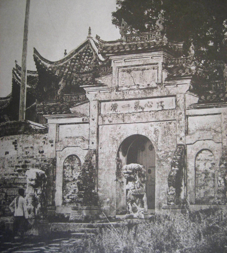 清末至民国时期灵泽夫人祠老照片以及“江心第一境”石匾根据公开的招标计划,该工程总投资1000万元。工程内容为依据照片资料和文献记载,对蛟矶庙大殿和附属建筑以及周边民房进行适度改造,整治水系和驳岸等,打造文化旅游体验空间,最大限度恢复蛟矶烟浪的历史风貌。