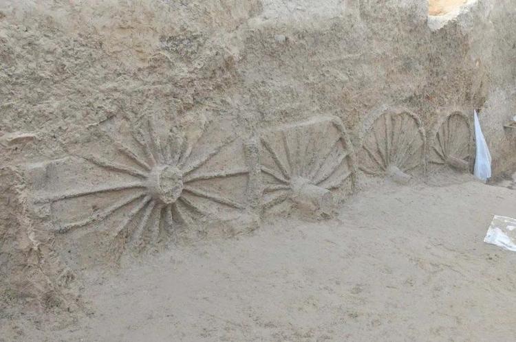 ▲M39墓道殉车西侧车轮放置情况。
