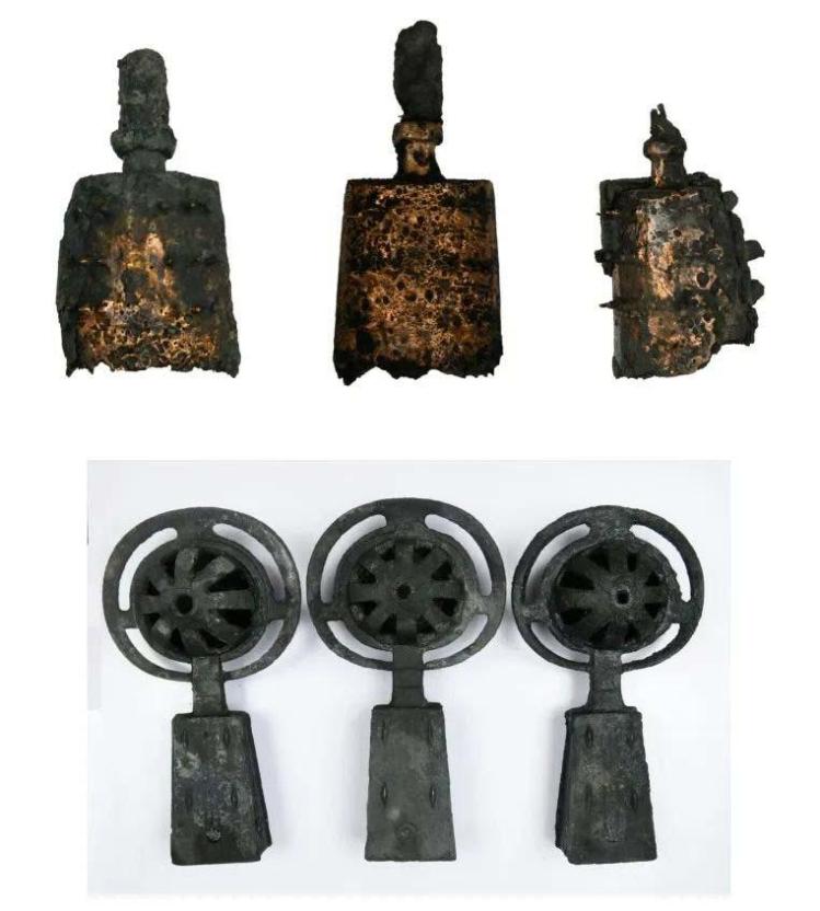 四座甲字形大墓规模大,随葬品数量较多,墓道内普遍殉车,多者四辆,少者一辆。四座墓葬中以M39随葬遗物最多,等级最高,出土鼎、簋、甗、提梁卣、尊、觚、盉、盘、匜等青铜礼器十余件,部分器物上刻有铭文,铭文内容对于解读墓主身份以及城址性质具有重要意义。