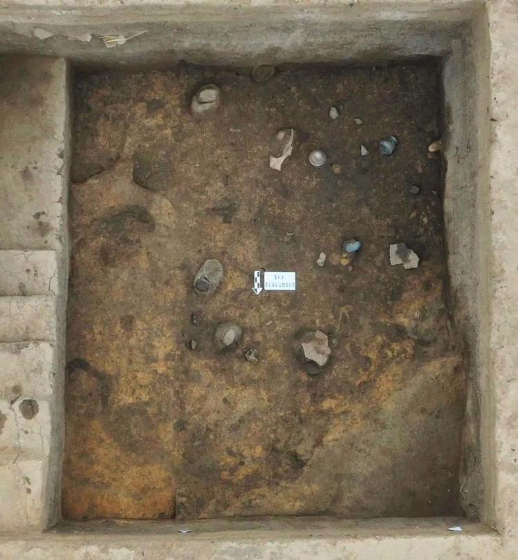 ▲岳石文化半地穴式房子地面上散落的器物。