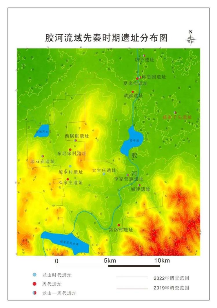 ▲胶河流域先秦时期遗址分布图。