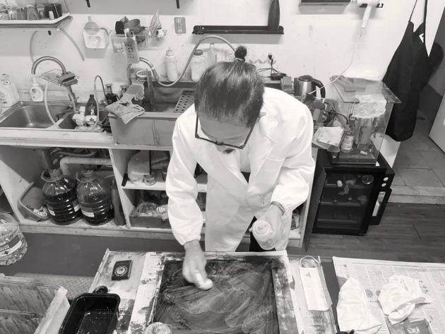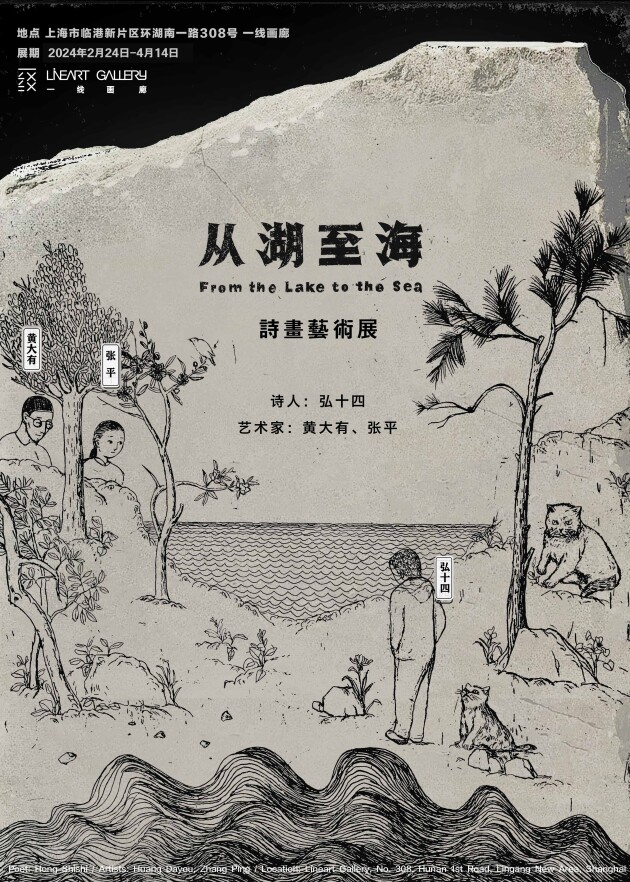 “从湖至海”的诞生地在上海临港,就在这面“湖”漫步到~那片“海”之间。铜版画作为插画,像“神曲”或莎士比亚全集、十四行诗等等都是古典文学作品和图像艺术结合的经典案例。这次黄大有和张平作为艺术家,参与诗集插画的合作项目的重要原因,是艺术家感兴趣诗人弘十四的哲思层面,和他揭开现实虚幻面纱的洞察力。