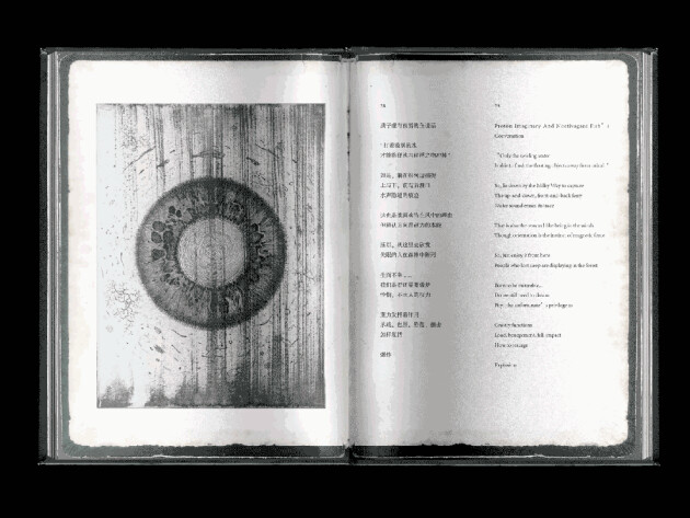 现实是一个宛如”你喜欢天空静止还是流淌“的问题,我们时常在现实的左边具象地描述,就像诗集左边精湛而优雅的技艺下克制且硬朗的形象,它们在图像的世界里替代我们编织和修补异化的所有,它们超越现实、解构观念、连接心灵、当下觉知;然后我们迎面遇见右边抽象得快要落地的思想感情,时而迷狂时而冷僻,就像神经元举起镜子看见自己,惊愕地说出了什么。绘画的语言、文学的语言、此刻正在和你说的日常语言,但凡是语言,皆是神秘的,我们表达,是为了从语言的神秘中得到慰藉。