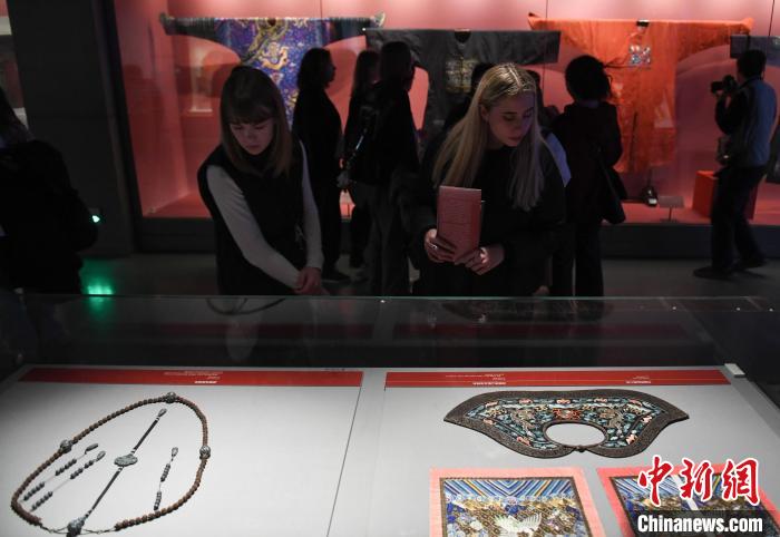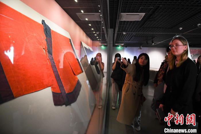 图为:明朝赤罗衣吸引中外参观者。王刚 摄