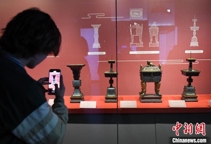 图为:清朝兽面纹掐丝珐琅五供吸引外籍留学生。王刚 摄
