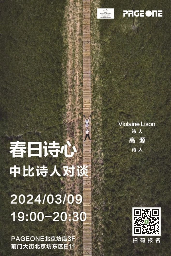 无论在中国还是比利时,万物复苏的春天总是与诗歌艺术形影不离。每年三月,人们以各种形式庆祝着“诗歌”这种艺术形式。第26届“诗人的春天”活动将以“恩典”为主题,再次庆祝读者与诗人之间的羁绊。值此之际,比利时瓦隆-布鲁塞尔国际关系署有幸邀请到了比利时诗人维奥莲·利松(ViolaineLison)以及中国诗人高源。3月9日晚,让我们相聚PAGEONE北京坊店,通过中比作家和编辑的不同视角,分享我们对诗歌、对文学、对生活的热忱。