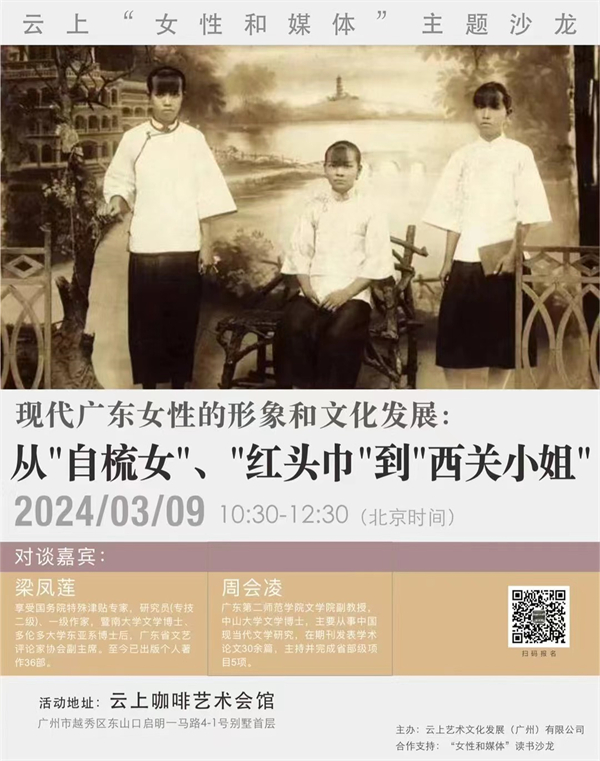 广东是一个历史悠久、文化繁荣之省,自古以来就有着许多具有代表性而且在社会生产和生活中发挥了不同作用,做出了不同贡献的女性们。从“自梳女”、“红头巾”到“西关小姐”,近现代100多年来,广东女性形象在不同发展阶段呈现出了不同的轨迹和特点。然而推到历史前台的机会少之又少。今天,我们借着国际妇女节这个值得对女性的贡献进行纪念和致敬,将不见的或被隐藏或被淡化的历史得以彰显的时间,做一下在地的情境中的重述女性历史和文化发展的工作。讲座将从历史群像——包括“自梳女”、“红头巾”以及“西关小姐”——的发展谈开去,由两位女性文化的研究者和专家引领我们重新解释和梳理一下这个历史变迁的过程。