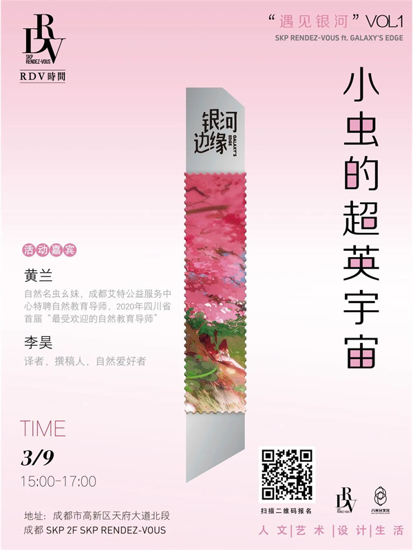 3月9日,在万物复苏,最适宜进入自然的春天里,我们以自然教育为主题作为“遇见银河”系列活动的第一场,邀请到自然教育导师黄兰、译者李昊来到成都SKP,以阅读为起点,以自然教育为方向,把身边、附近变成神奇场域,也让大小朋友们能更深入地享受阅读日常、探索春日周边。