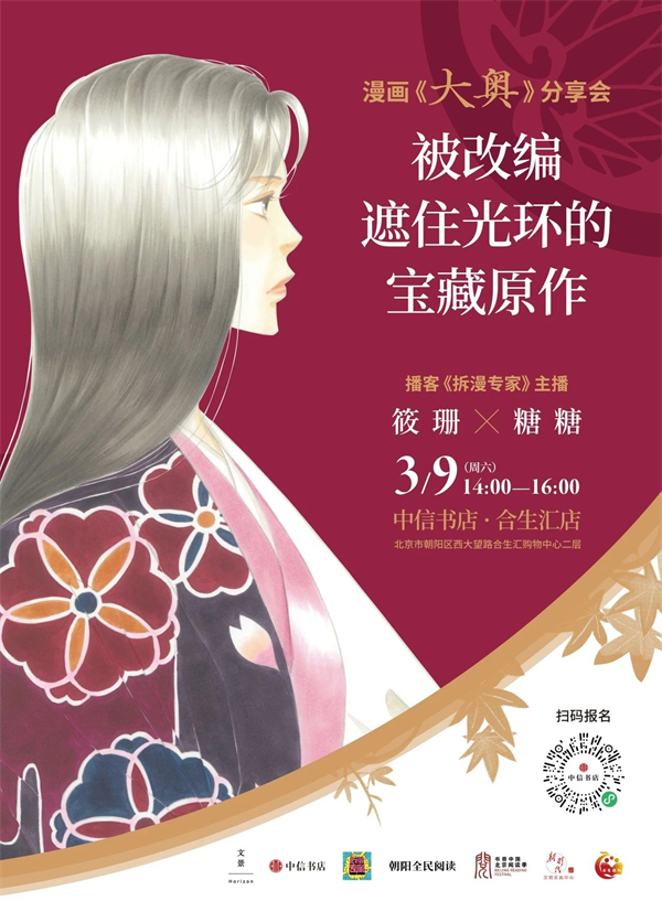 漫画×科幻×历史×性别,吉永史创造的《大奥》宇宙还有多少宝藏值得我们去挖掘?3月9日,在中信书店·合生汇店,播客《拆漫专家》的两位主播将和大家一起走进吉永史构建的《大奥》宇宙,重新发现这部宝藏漫画的魅力!