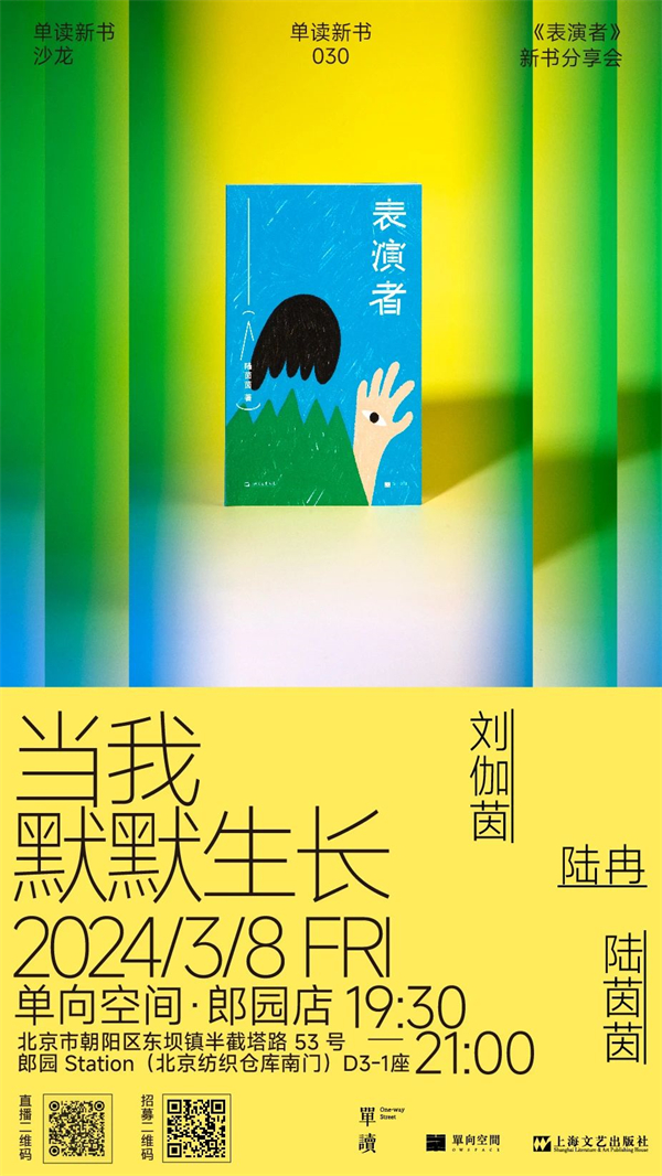 3月8日,在国际劳动妇女节,我们由《表演者》出发,希望将目光聚焦各种形态的女性创作。《表演者》作者陆茵茵、导演刘伽茵与独立漫画作者陆冉将一起来到单向空间·郎园Station店,聊聊在创作中必然经历而又不可或缺的那段沉默的蛰伏期,她们各自是如何度过的?她们的创作又是如何从自身的成长中汲取养分?