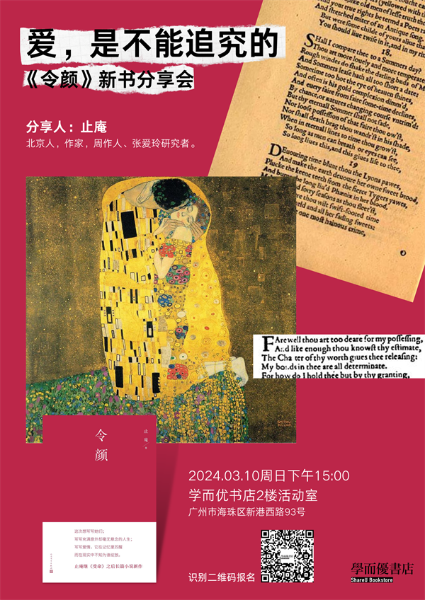止庵第二部长篇小说《令颜》面世。60岁之后写小说,止庵的灵感与心力来自哪里?与前作相比,《令颜》的创作难度在哪里?话剧《令颜》和小说《令颜》的关系和结构是怎样的?本周日下午,止庵将做客学而优书店,与读者们好好聊聊他的新作。