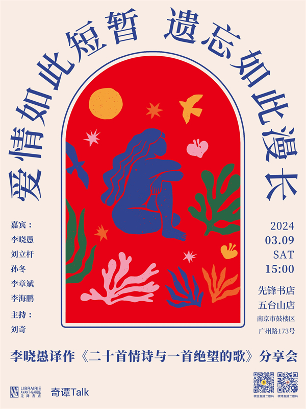 南京|爱情如此短暂,遗忘如此漫长——李晓愚译作《二十首情诗与一首绝望的歌》分享会