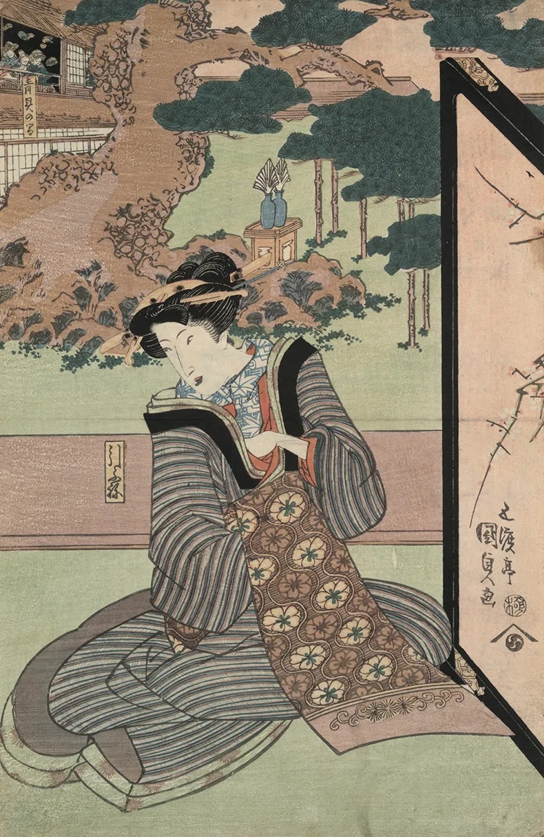 歌川国贞,《京都岛原住德室的名妓》, 三联画(右侧),约1844年