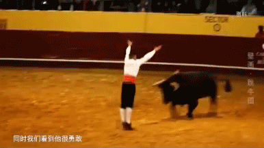 青年在牛身上翻飞