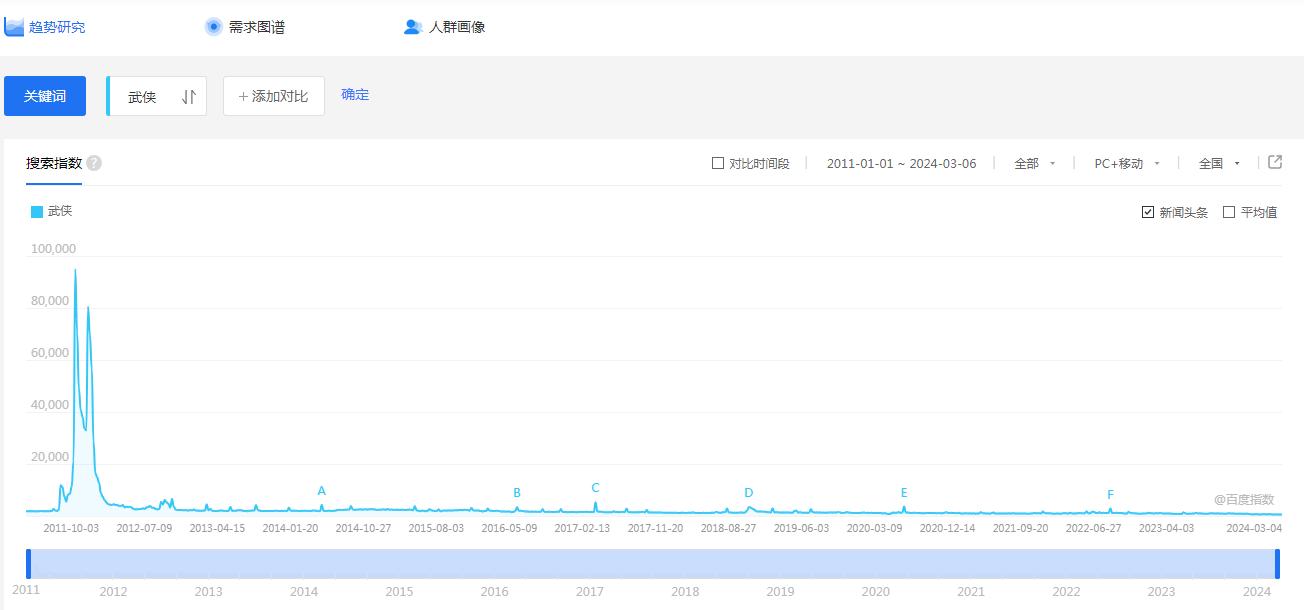 “武侠”百度指数。网页截图