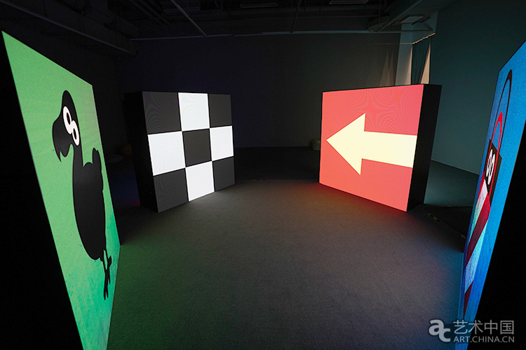 符号流域 2000 x 2000 x 600 mm 双面LED屏幕,动画作品,木质边框