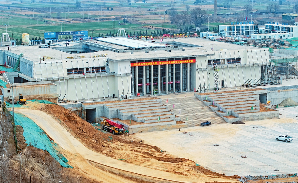 3月13日,在临汾市陶寺遗址博物馆项目建设工地,工人们正加紧施工。据悉,该博物馆占地面积74.4亩,总投资2.75亿元,建成后将通过数字复原、现代化展陈与实物展示等多种手段展示陶寺文化和帝尧文化。(李现俊)