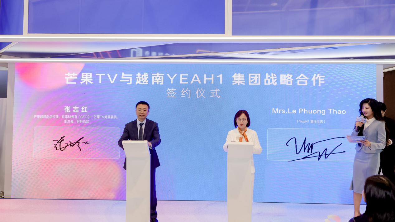 推介会上,芒果TV与越南头部媒体集团YEAH1举行战略合作签约仪式。此前,双方已合作落地《乘风破浪的姐姐 越南版》。节目播出后连续15期收视登顶,荣获越南国家电视台年度最佳综艺节目奖,同时以33家赞助商的数量创下越南综艺节目招商之最,取得商业与口碑上的全面成功。此次达成战略合作,双方将推动《乘风》后续系列、《披荆斩棘》《妈妈是超人》等芒果IP的越南版于年内上线播出。同时,YEAH1旗下电视台将在其两小时黄金档中搭建“芒果时段”,并在未来将其升级为“芒果频道”,在越南地区实现“台网联动”。