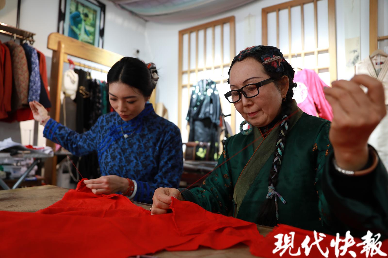 △李欣传授徒弟佟鑫妍制作汉服的技艺
