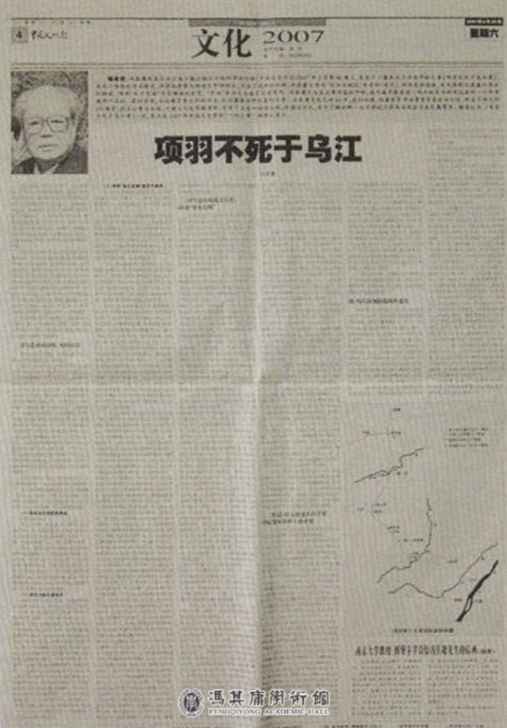2007年8月25日《中国文化报》刊登冯其庸的《项羽不死于乌江》